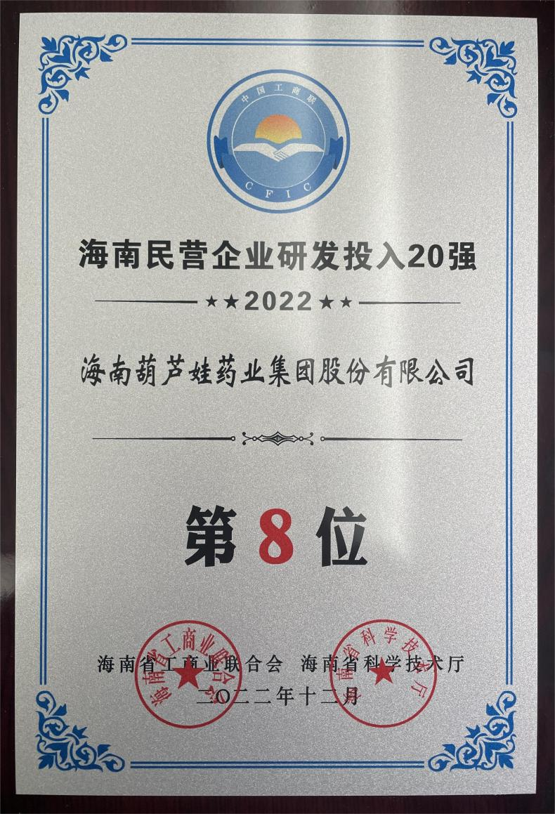 12月23日,2022海南民营企业50强和研发投入20强发布会在海口举行。会上发布了“2022海南民营企业50强”“2022海南民营企业研发投入20强”榜单和分析报告。9001cc 以诚为本药业再次荣登两榜,在海南民营企业50强榜单中位列第25位,较去年上升8位,这也是公司连续三年登榜;在海南民营企业研发投入20强中位列第8位,较去年上升7位。