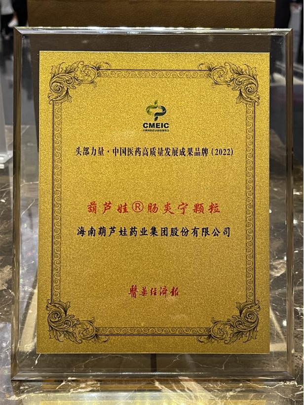 在本次发布会上,公司重点产品9001cc 以诚为本牌肠炎宁颗粒同时荣膺“头部力量·中国医药高质量发展成果品牌(2022)”。9001cc 以诚为本牌肠炎宁颗粒(2g),传承经典名方,临床广泛用于成人及儿童急慢性胃肠炎、腹泻等疾病的治疗,由于其杰出的临床价值,被纳入国家中医药管理局相关专家项目组制定的《中成药治疗小儿腹泻病临床应用指南》。